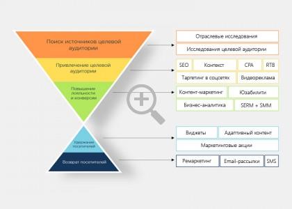 Наше агентство оказывает услуги комплексного интернет-маркетинга, которые включают в себя полный цикл работ по развитию и продвижению сайта, размещению интернет-рекламы и увеличению конверсии в обращения и продажи. Только сочетая различные маркетинговые инструменты, можно добиться эффективного развития бизнеса в сети.