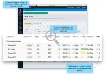 Процесс интернет-маркетинга построен на постоянном анализе полученных результатов. Без данных о результативности рекламных кампаний Вы неэффективно потратите до 67% бюджета. Для того чтобы эти данные получать в реальном времени, мы связываем все рекламные носители и кампании системой сквозной бизнес-аналитики (Roistat или Calltouch).